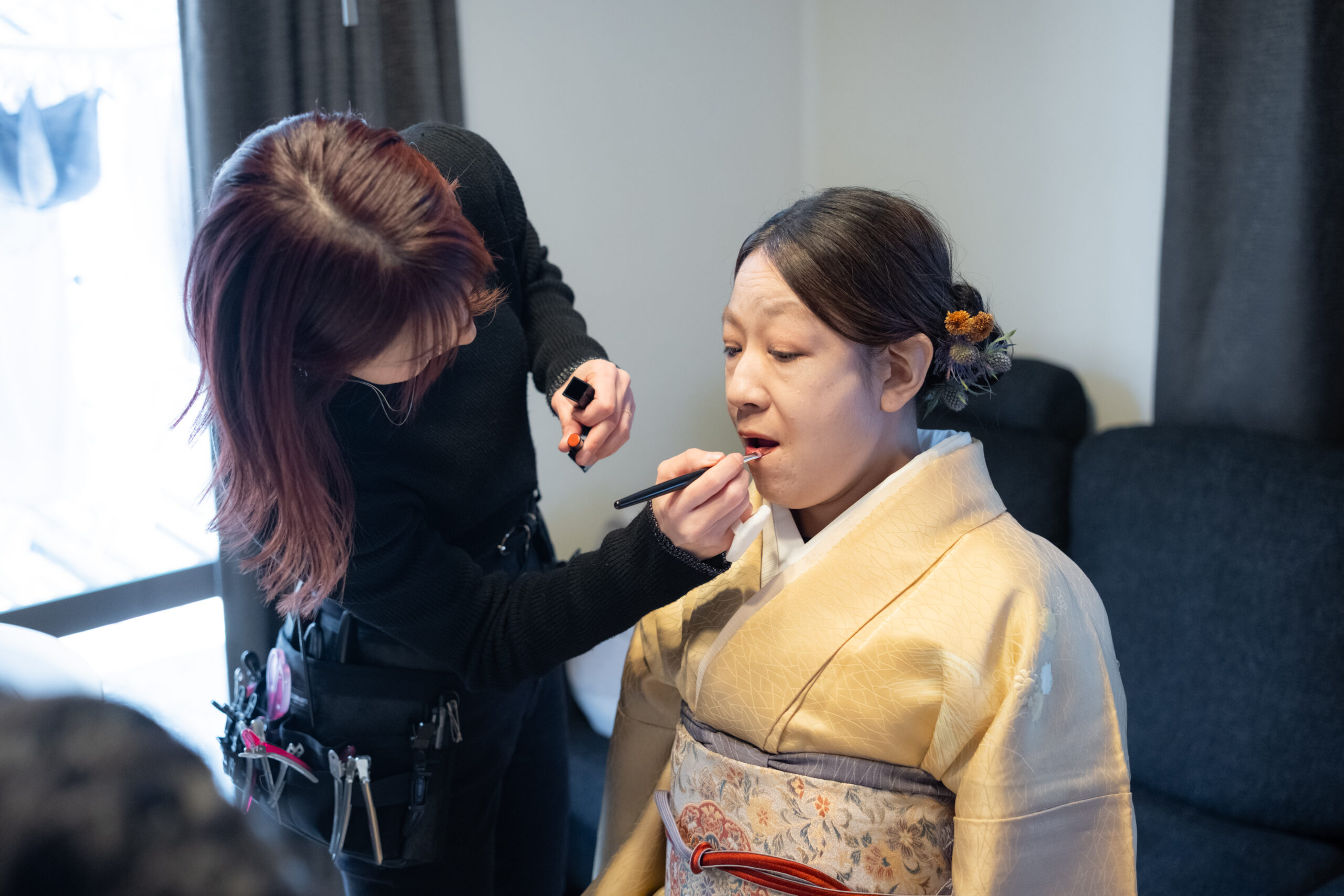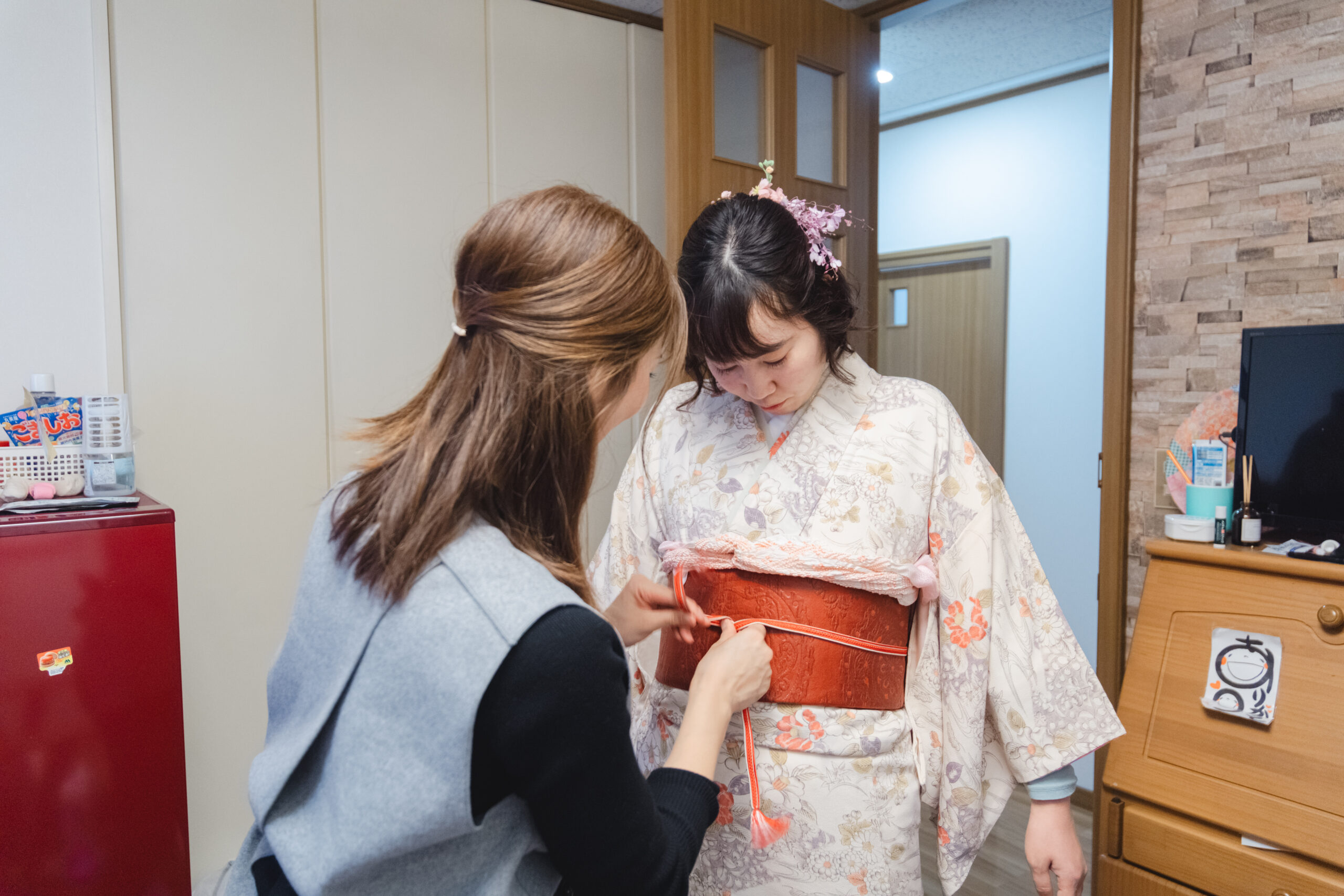 お支度は、どうしても距離が近くなる時間。